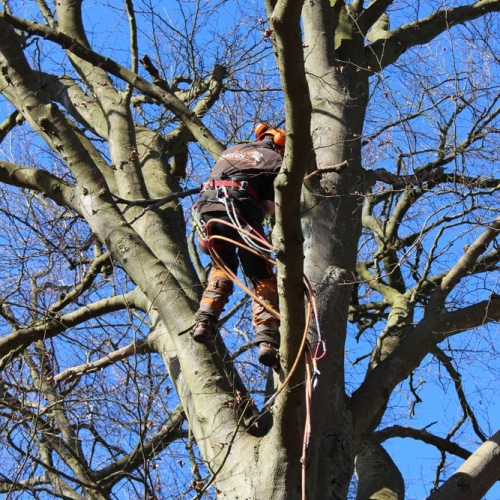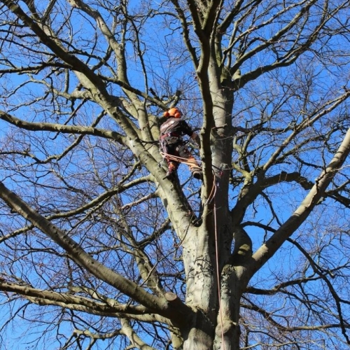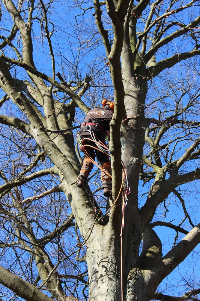 Hvis dit træ efterhånden er blevet så højt, at det ikke er muligt at fælde træet i ét stykke fordi der ikke er plads til, at det kan ligge ned, så er